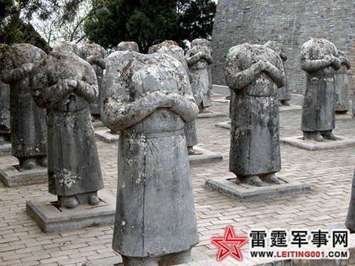 众多的石像和梁山北峰的高大形体,共同构成了乾陵雄伟壮观的气势