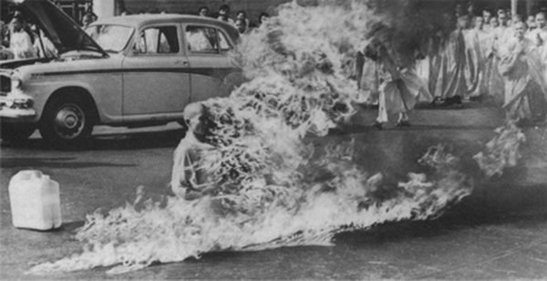 越南大乘佛教徒在西贡郊区自焚,抗议南越政府对他们佛教徒的迫害。