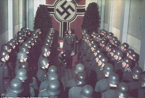 这些照片大部分摄于希特勒的多次生日庆典上。他的50岁生日是在1939年4月,因盛大阅兵而备受瞩目。仅仅5个月后,他命令纳粹军队开进波兰。这一行动标志着欧洲战场的开辟。