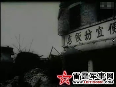 图为被轰炸后的中国城镇图