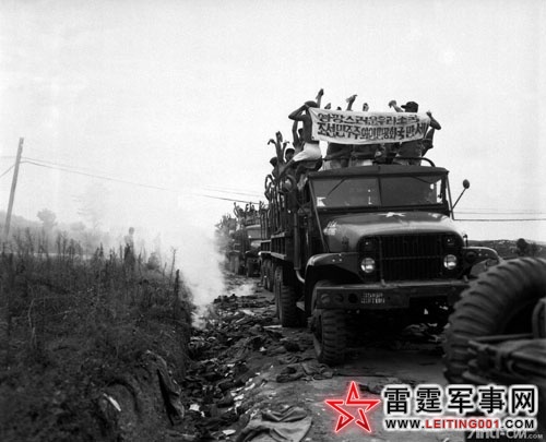 韩国部队更是惊恐万状,狼狈不堪,丢弃了大量的武器和物资,一窝峰似地南溃逃。从金城通往华川的公路上,向南溃退的韩国军队,汽车压着尸体、坦克挡着汽车,乱成一团。那些仓皇溃逃的韩国士兵,有的攀在坦克上,有的骑在大炮上,但是还有成千上万的人用那起了水泡的双脚一拐一拐地向南步行,到了精疲力竭的时候,在路旁的泥泞地里倒头就睡,顾不得倾盆大雨了。此时,如果共军有一队战斗轰炸机的话,他们就能够把公路上的这个长达数英里的地段变成一条血河。