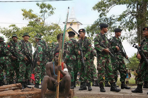 印度尼西亚巴布亚地区两个部落大约500人18日上午展开部落战争,造成了二死一伤。两个部落之间使用传统冷兵器互相攻击。这里的人们一直以来都有一个古老的传统,那就是为了解决矛盾要上演一场“传统战争”,所以连警察也没办法制止。 两个部落在这场争斗中都使用传统的部落武器,比如用植物和其他天然材料做成的矛和盾。由于参战的有数百人,警方很难将双方分开。在场的警方人员中有4人中箭。另有四辆车子被纵火烧毁,其中一辆是警方的装甲卡车。