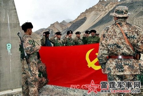 巡逻官兵在界碑前宣誓。