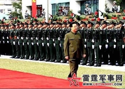 资料图:中共中央总书记、国家主席、中央军委主席胡锦涛检阅驻澳部队。中新社发 张勤 摄