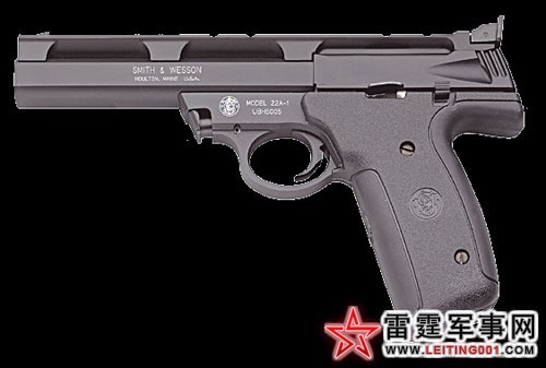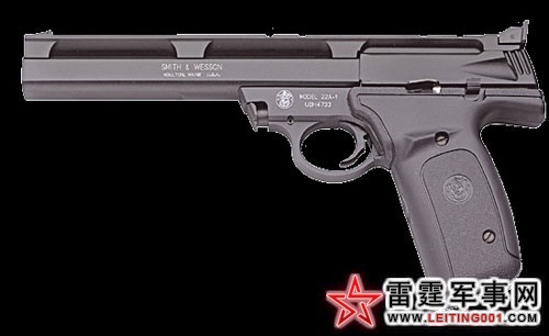 该枪是史密斯-韦森公司的一款0.22英寸口径手枪,专门针对民用市场,共有8款不同型号,图为其中3款。图中3款手枪套筒长度、握把长度各不相同。