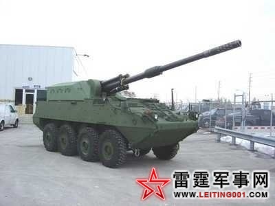 至于“斯瑞克”另一种重要的衍生型──MGS型则从2001年开始研发,配备一座GDLS开发的低截面积无人炮塔(LowProfileTurret,LPT),此炮塔最初是安装在铁勒达茵公司竞标AGS的远征战车(ExpedionaryTank),该战车在AGS中败给拥有传统炮塔构型的M-8;不料日后AGS竟然夭折,而原先是M-8手下败将的LPT炮塔反而在SBCT中来了个咸鱼翻身。LPT的构型十分前卫,基本上是将一门105mm主炮外置于一个操作、装填、进弹完全自动化的旋转炮架上,炮塔上还装有一挺M-212.7mm机枪、一挺M-2407.62mm机枪以及两组MK-6四联装烟幕弹发射器。LPT的自动进弹/装填系统由Curtiss-WrightCorp'sVistaControls研发,具有稳定基座,能在行进间射击。最初美军打算把为M-8开发的M-35105mm轻量化低后座力主炮搬到MGS上,不过最后则决定使用一门M-68A1E4105mm51倍径旋膛炮,此炮乃是由早期型M-1主力战车上汰换下来的M-68A1并略作修改,炮身最主要的区别是加装炮口制退器,威力高于M-35这类低膛压火炮。MGS能携带18发105mm炮弹,其中8枚储存于自动装填系统的弹鼓中,另外10发存放于车体后部弹舱,以机械方式自动为弹鼓进行装填,弹种选择包括动能穿甲弹、高爆爆震弹、高爆人员杀伤杀伤弹、高爆穿甲弹以及人员杀伤榴弹等;至于12.7mm与7.62mm机枪子弹的备弹量则分别为400与3400发。MGS的炮手席设有三具潜望镜,并配备整合日间观测仪与红外线热影像仪的模块化炮手瞄准仪。