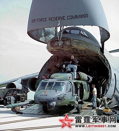 18轮的重型卡车可以轻松地从C-5的货舱中开出