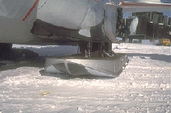 美国纽约国警队第109战术空运大队带滑撬的C-130D停在格林兰雷达站旁
